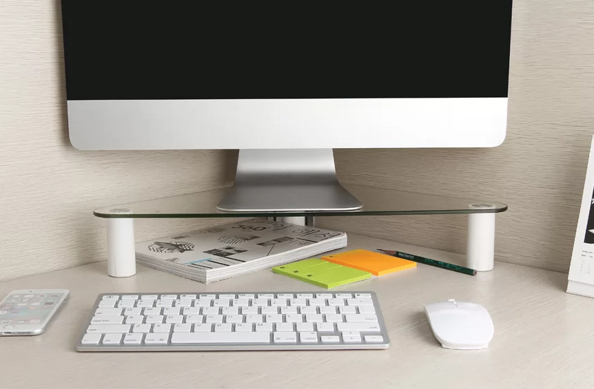 Ergovida's triangle tabletop monitor riser ESS-102 is perfect in this case.