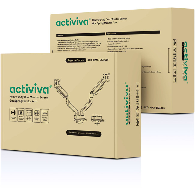 Introducing the activiva ACA-HMA-DGS01Y Heavy-Duty Dual Screen Gas Spring Monitor Arm, designed to accommodate dual 17”-35’’ flat panel or curved monitors weighing up to 15kg per screen. With its heavy-duty construction, this monitor arm is perfect for heavy and oversized displays, and provides many benefits to enhance your viewing experience: