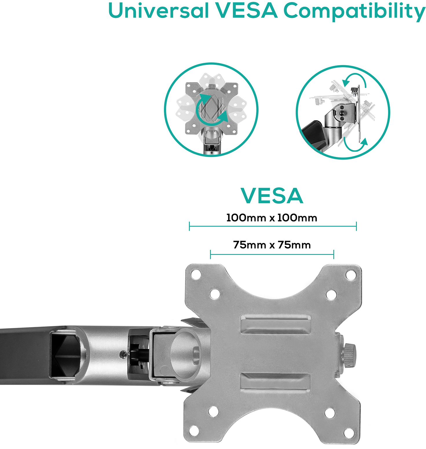 - VESA Compatible: 75x75mm, 100x100mm