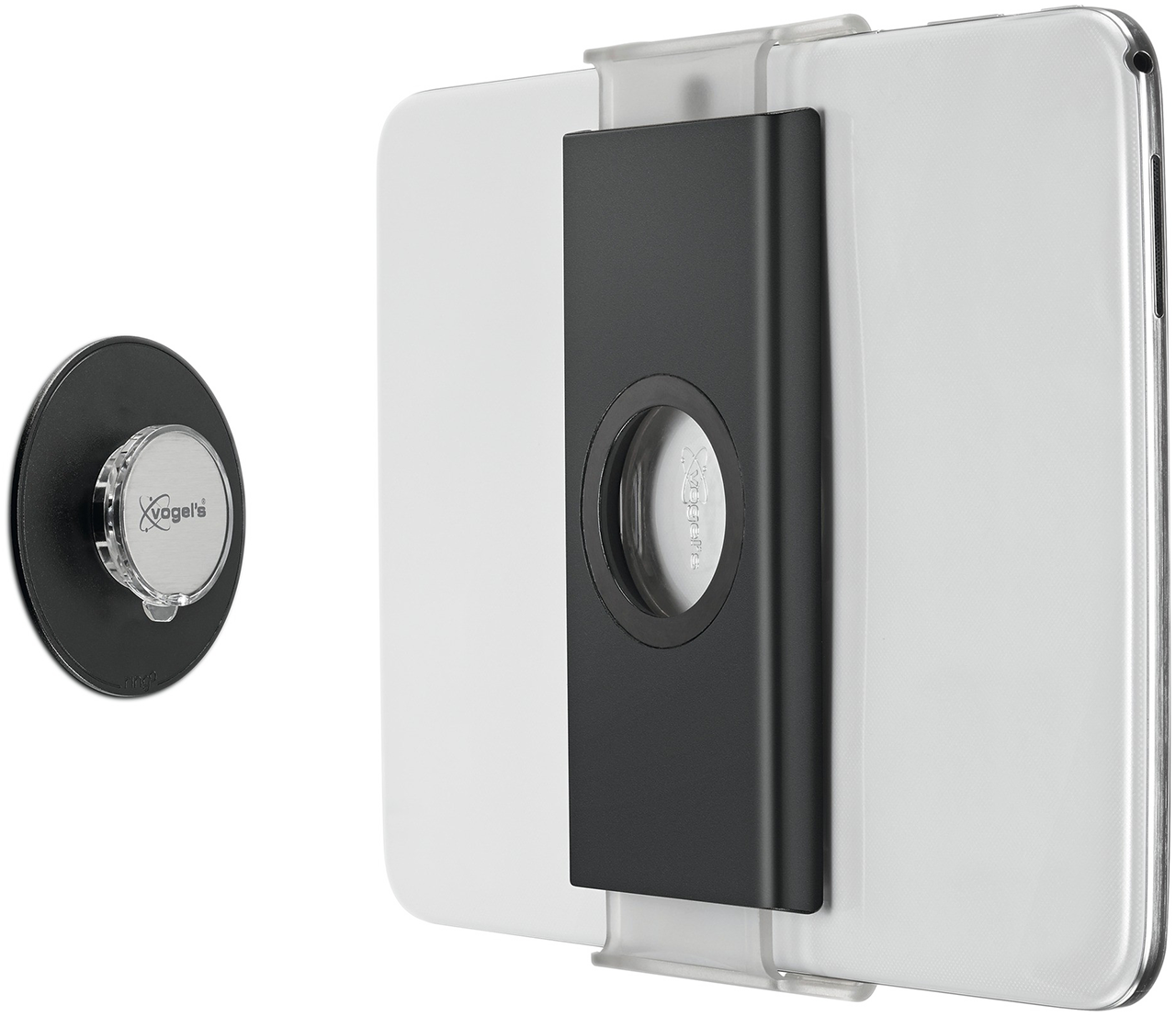 The stylishly designed Vogel's tablet holder fits alltablets from 7-12 inches (15-22 cm) that are 0.2-0.5 inches (0.5-1.3 cm) thick.
