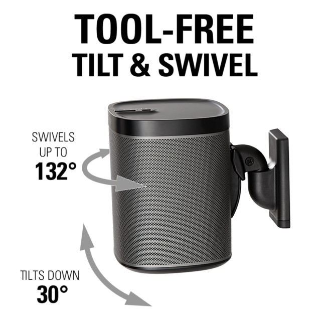Enjoy optimal audio quality from anywhere in the room with the SANUS WSWM adjustable wall mount,designed especially for the Sonos ONE, PLAY:1 and PLAY:3 as well as other wireless speakers weighing up to 10 lbs.