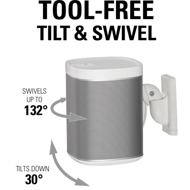 Enjoy optimal audio quality from anywhere in the room with the SANUS WSWM adjustable wall mount,designed especially for the Sonos ONE, PLAY:1 and PLAY:3 as well as other wireless speakers weighing up to 10 lbs.