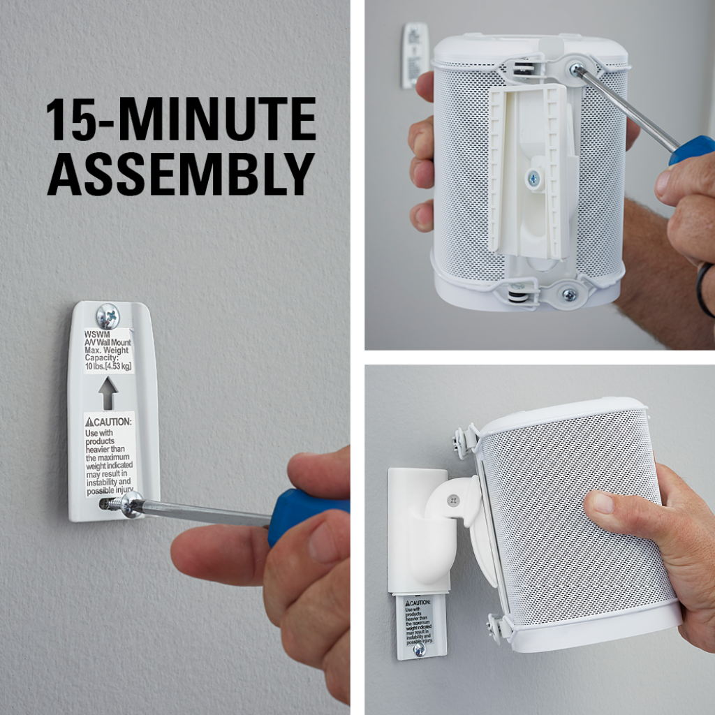Installing to drywall, wood studs or concrete in only 15 minutes and boasting effortless tilt and swivel capability,the placement flexibility of theWSWM makes it versatile enough for any system setup and for voice integration technology like that of the new Sonos ONE.