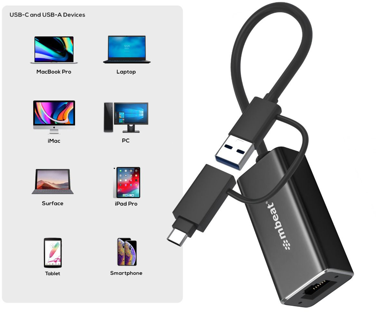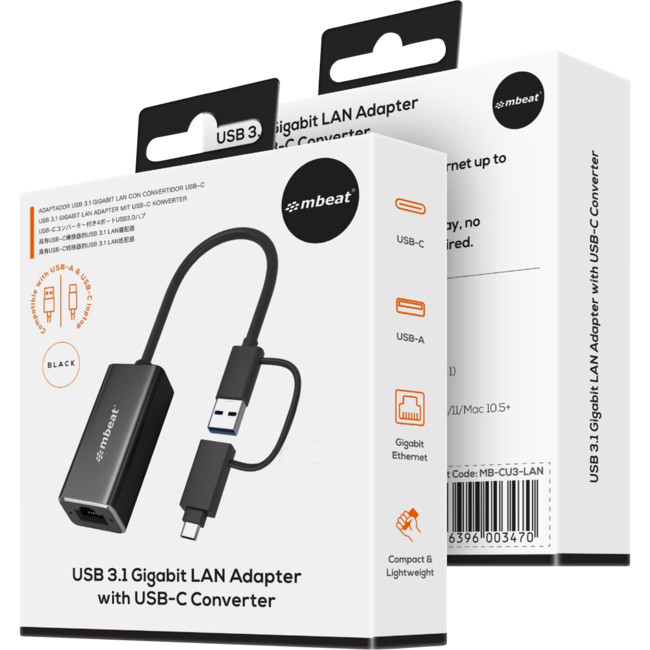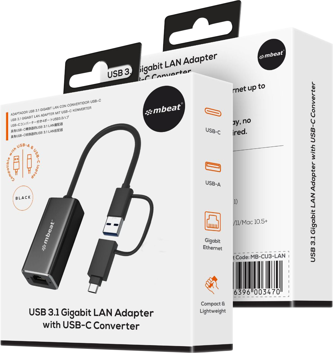 USB 3.1 Gigabit LAN Adapter with USB-C Converter