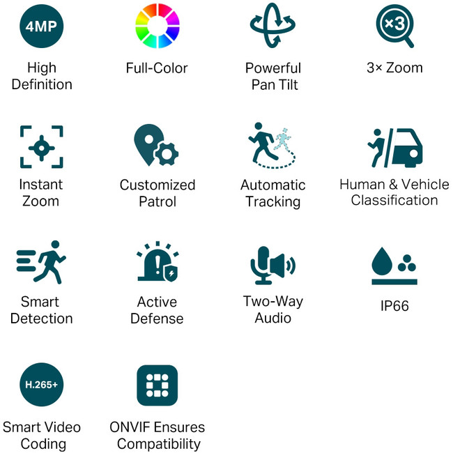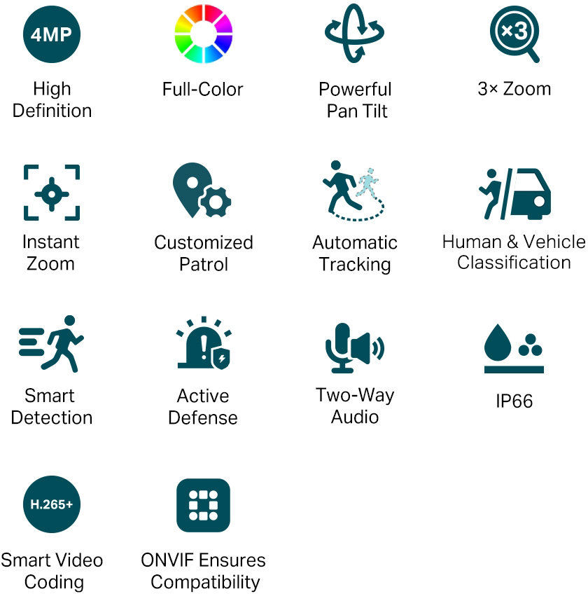 Alarm Linkage | Memory Card Video Recording, Message Push, Audible Warning, White Light Flashing |
