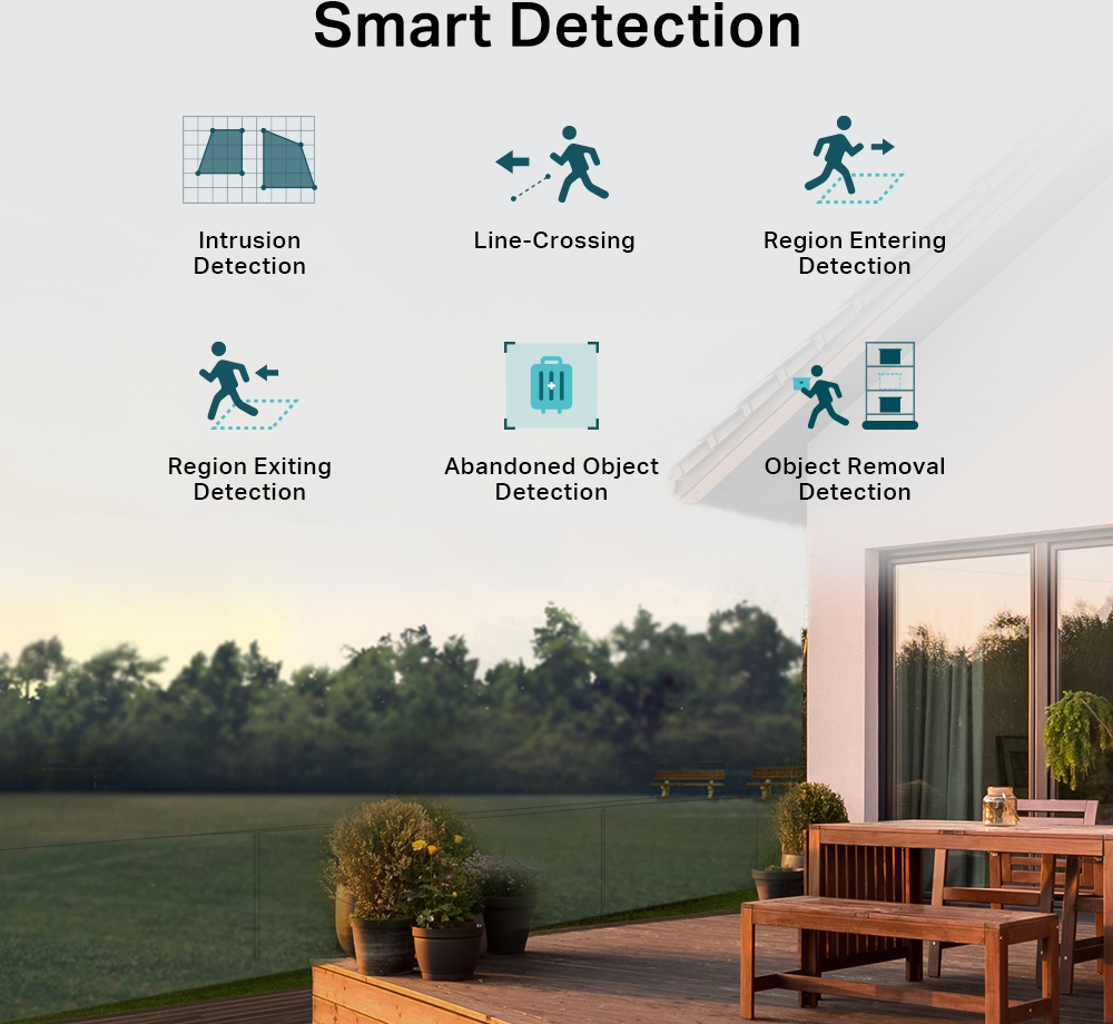 ALARM AND EVENT MANAGEMENT | Smart Event | Human & Vehicle Classification, Area Intrusion Detection, Line-Crossing Detection, People Detection, Vehicle Detection, Region Entering Detection, Region Exiting Detection, Object Abandoned Detection, Object Removal Detection |