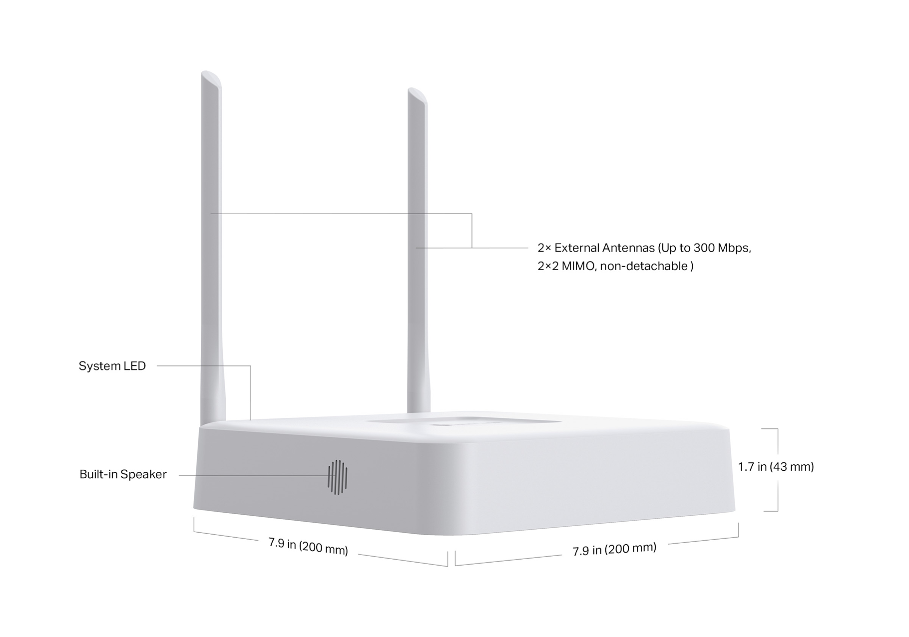 Dimensions( W X D X H ) Excluding Antennas: 7.9 × 7.9 × 1.7 in (200.3 × 200.3 × 43 mm)