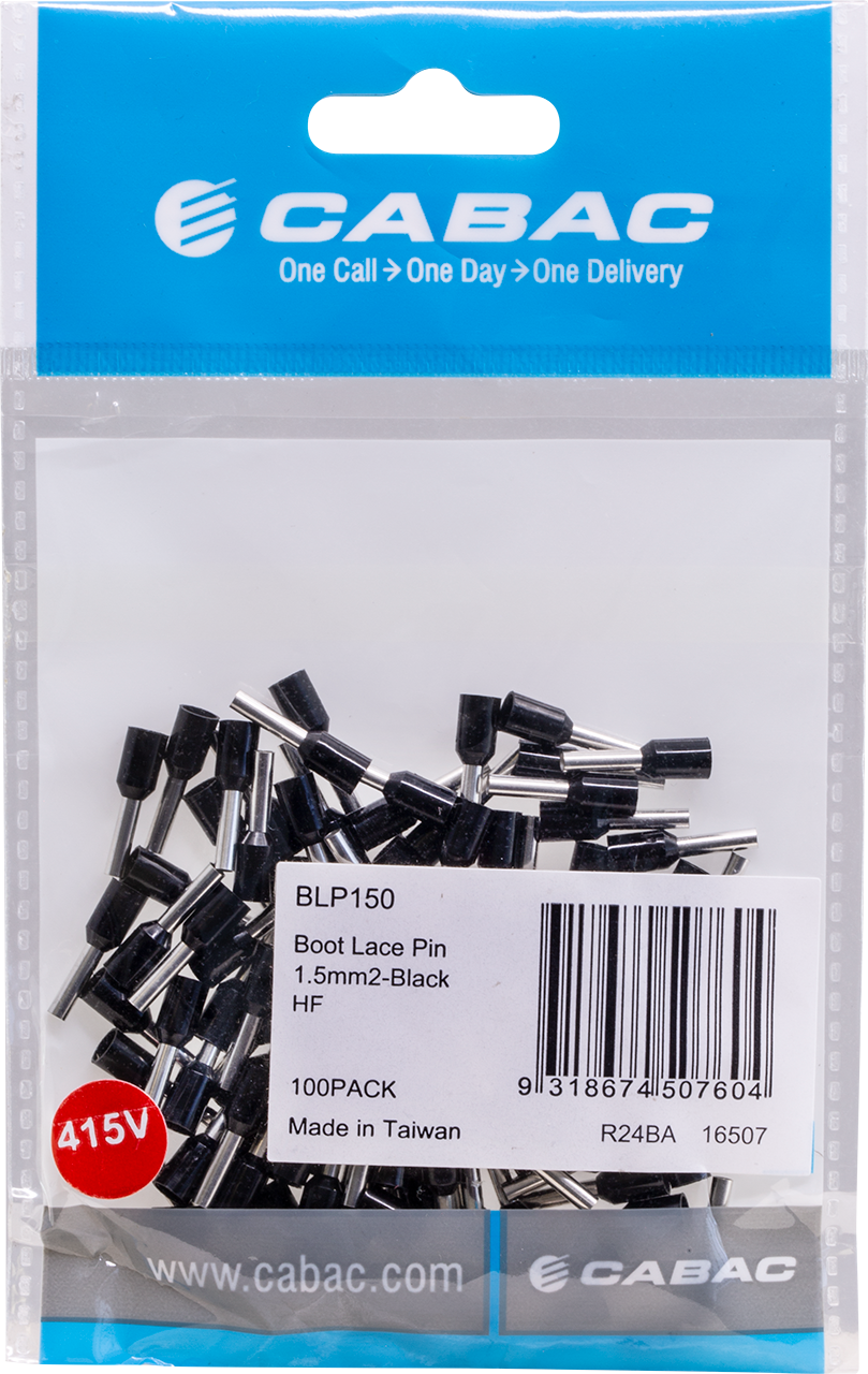 CABAC bootlace pins are used to terminate conductors, by containing the strands in a thin walled copper sleeve that is crimped onto the conductor. The sleeve ensures that no conductor strands stray, and also stops screws in the terminal from breaking strands. The sleeves should be slipped over the stripped conductor, and crimped. Crimp is only to hold sleeve on conductor until screw of terminal housing makes connection.