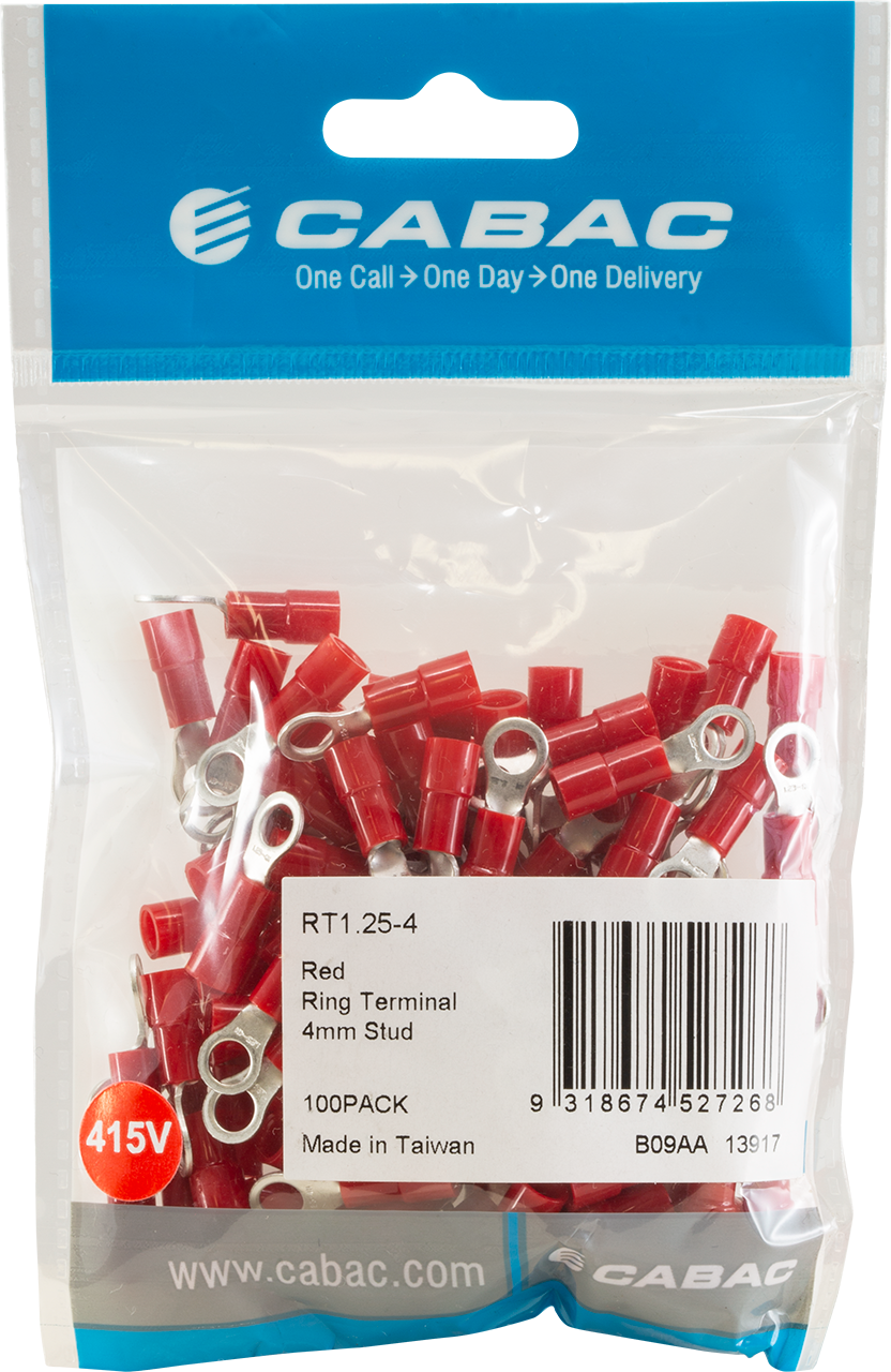 RT1.25-4-100 RING TERMINALS RED 4MM STUD