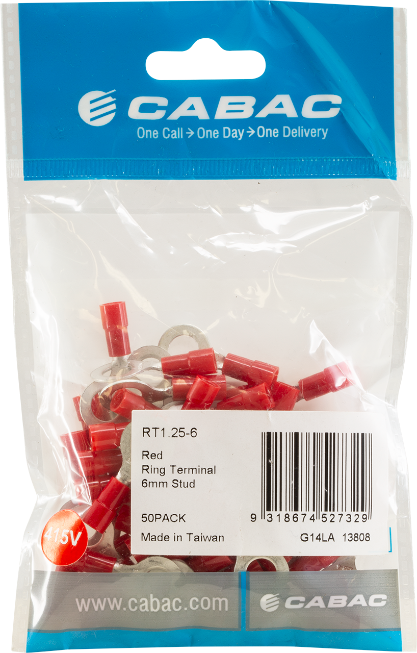 RT1.25-6-50 RING TERMINALS RED 6MM STUD