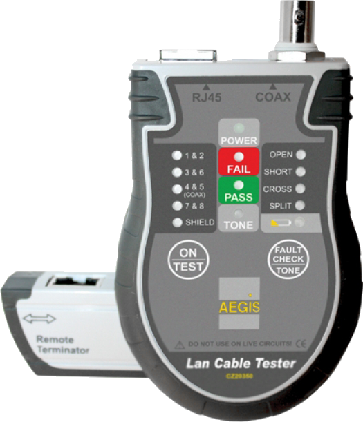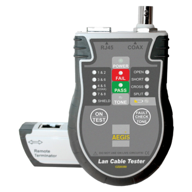 Even cable shield is tested for continuity! Building on the features provided by other testers such as the CZ20250, this LAN tester will also test coax networks and provide a tracing tone for cable identification.