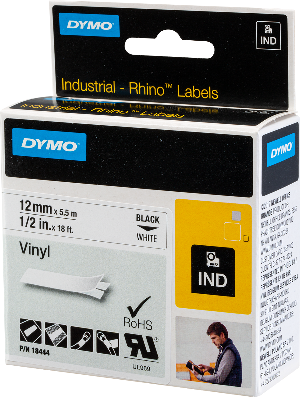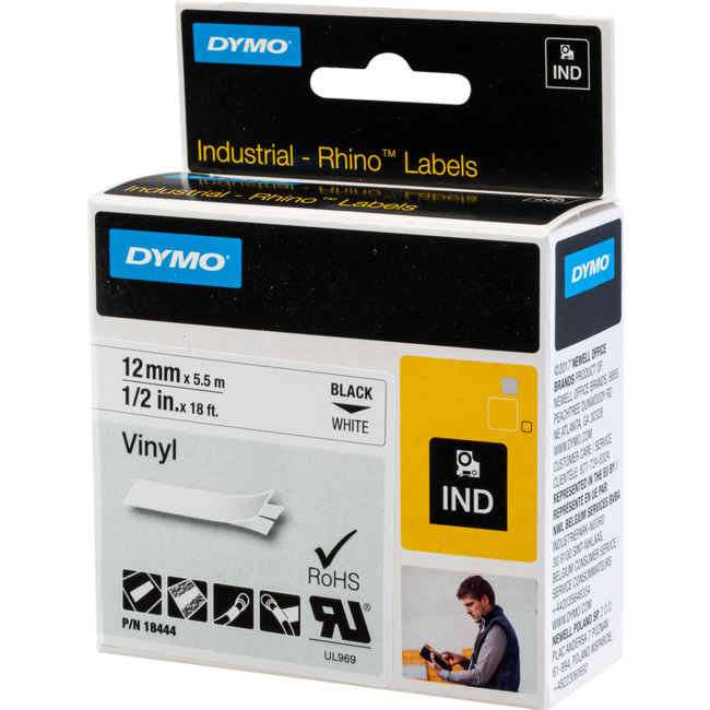 Vinyl Tape 1/2 in (12 mm), Black Font, White Label