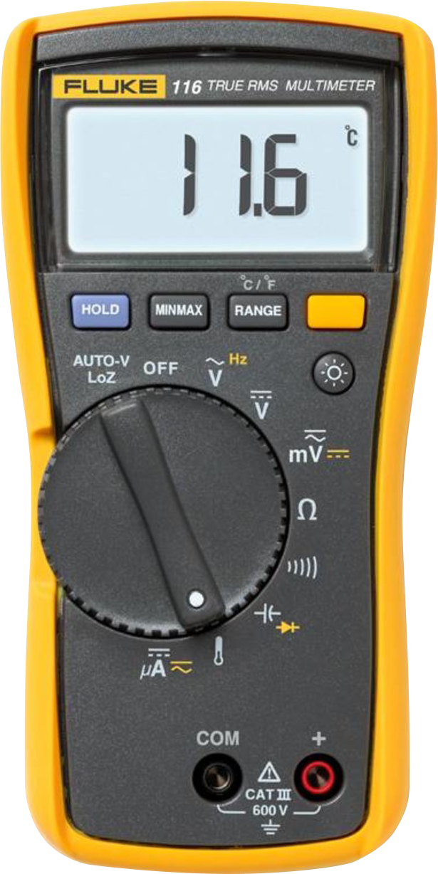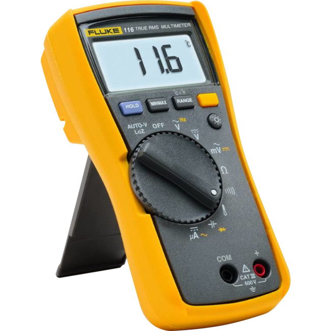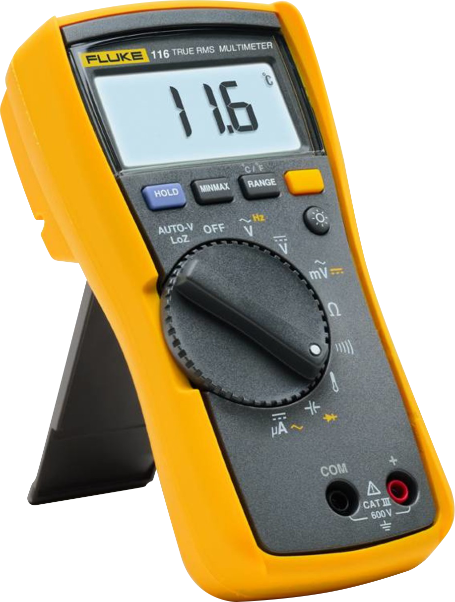 Compact true-rms meter for HVAC (heating ventilation air conditioning) troubleshooting. The Fluke 116 was specifically designed for the HVAC professional. It has everything needed in an HVAC meter including temperature andmicroamp measurements to quickly troubleshoot problems with HVAC equipment and flame sensors.