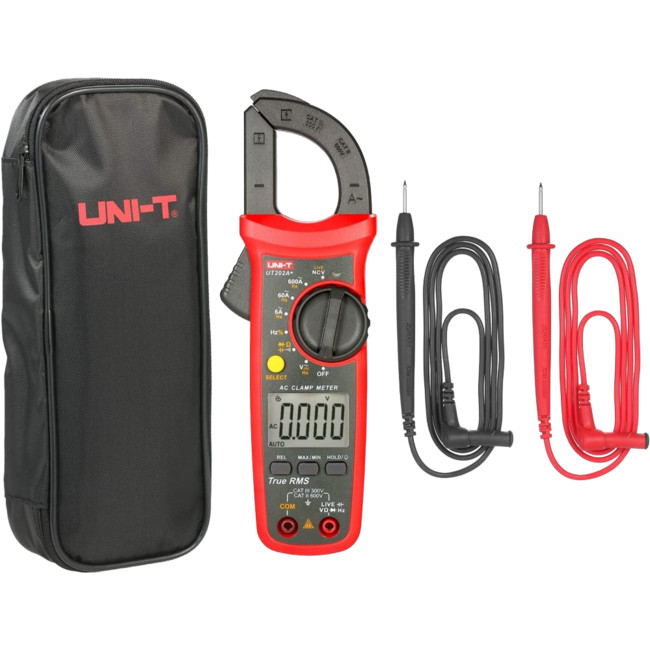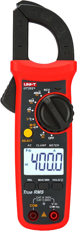 The UT202A is a true RMS AC clamp meter, it is designed according to EN61010-1 and CAT II 600V/ CAT III 300V safety standards, and it comes with full-featured protection which ensures users a safe and reliable measurement experience. Aside from all the standard features of an AC clamp meter, it includes plenty of additional safety features such as high voltage frequency measurement, fast capacitance measurement, audio-visual NCV detection, and especially live/neutral wire detection.