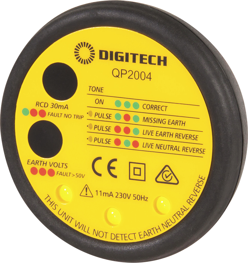 Assess the safety of installed main sockets and earth voltages, and identify dangerous electrical installations with this polarity and earth leakage tester. Feedback via the buzzer and three LEDs assist you to easily and quickly diagnose potential issues with wiring, missing earth, live/neutral reverse, earth/live reverse, missing neutral and live faults. The tester also detects raised earth voltages above 50VAC using the touchpad controls. The testeroffers 18 plug/pin status combinations and four RCD testing status combinations. Features: • Multiple testing options • Quickly identifies issues • IP65 rated enclosure Specifications: Rated current: 30mA /-5% Rated voltage: 230VAC @ 50Hz Max test time: 300ms NE lockout: 50V /-10%RMS Dimensions: 69(L) x 67(W) x 32(H)mm