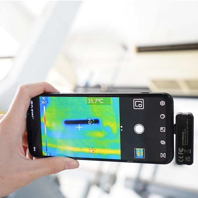 UTi120Mobile is a professional smartphone thermal camera module for Andriod devices, which is compact, portable, and easy to operate by connecting with mobile phones. UTi120Mobile provides a clear image with a fast response, and can also detect temperatures up to 400°C. Users can troubleshoot HVAC problems or investigate heat source issues around the house faster and easier with this thermal camera module. It is a perfect tool for DIY homeowners, outdoor lovers, engineers, contractors builders, etc.