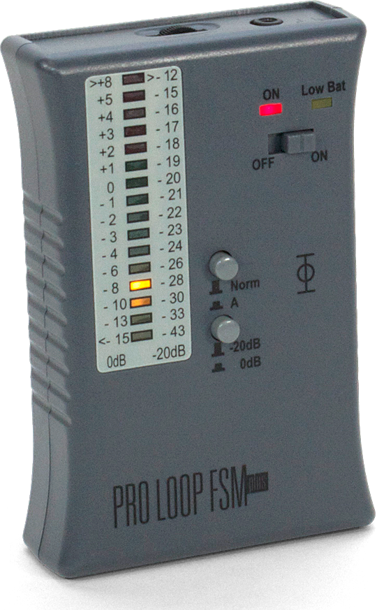 The PROLOOP FSMplus is a measuring device that measures the magnetic field strength of induction loop systems according to IEC 60118-4:006.