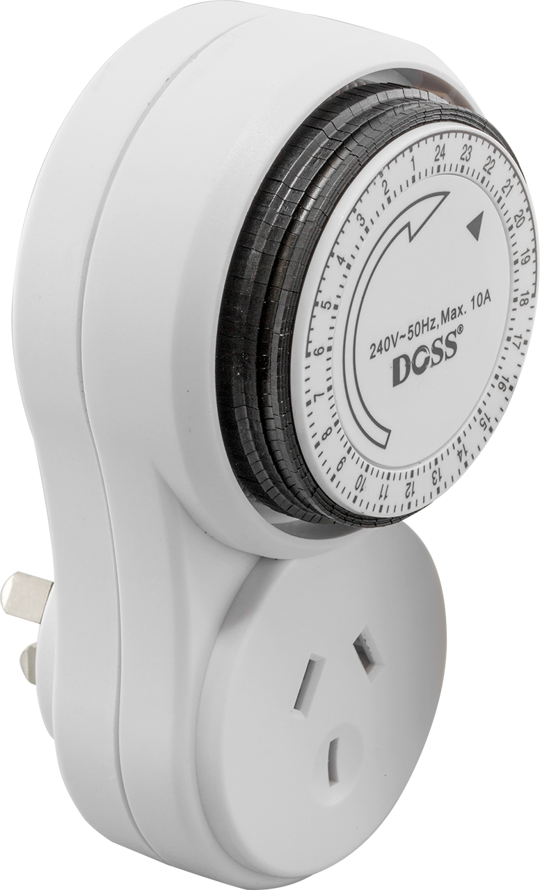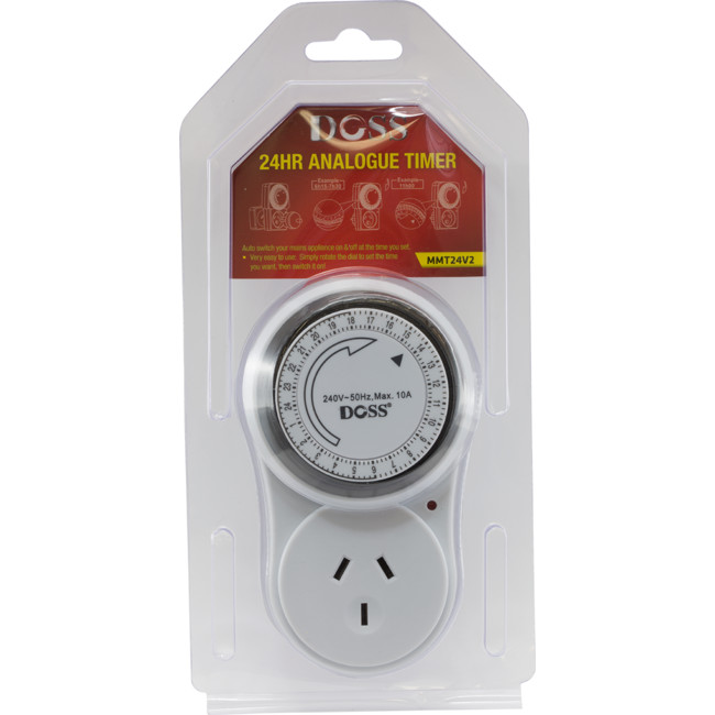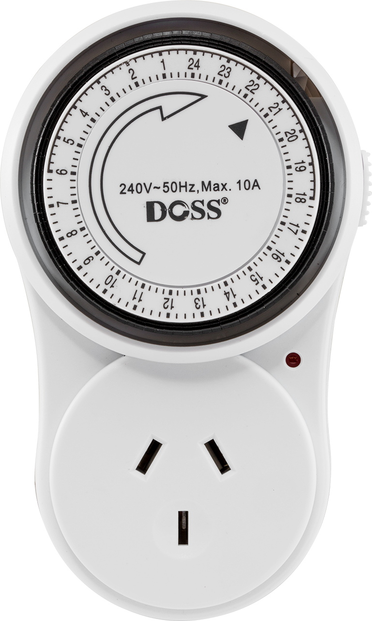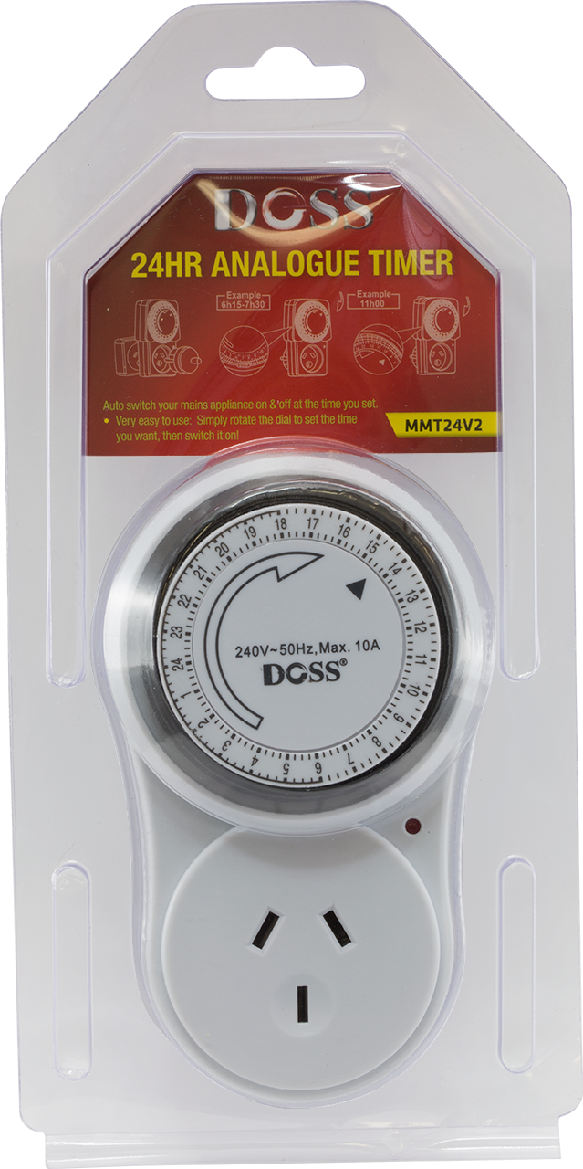• The DOSS MMT24V2 24-hour mechanical timer can automatically switch your mains appliances on and off at any time you set