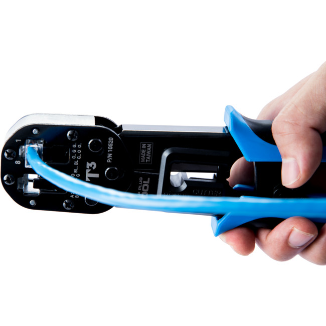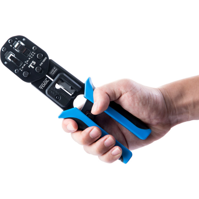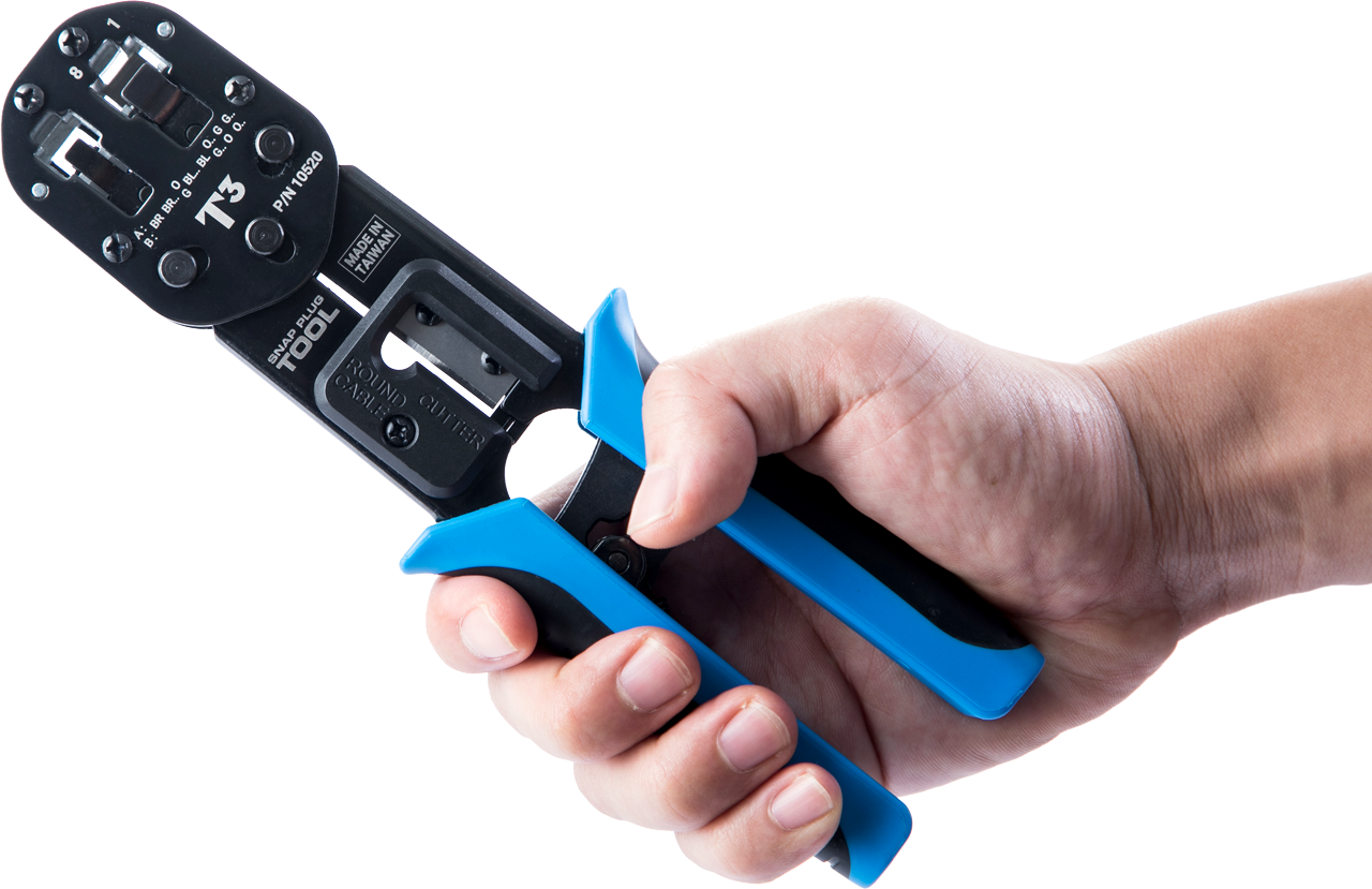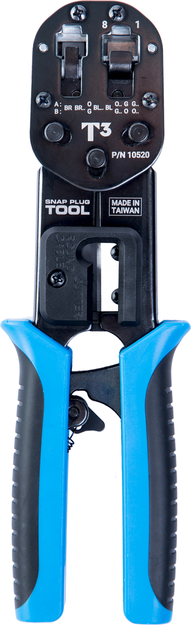 The T3 SNAP PLUGTM Tool is designed for the SNAP PLUGTM only. Good for professional installation that requires high performance. With ratchet mechanism and the combination of crimper, cutter and stripper, it?s a tool that could meet multiple needs for professional use. The parallel crimping force provides even and accurate pressure on each pins for the best termination.