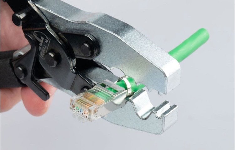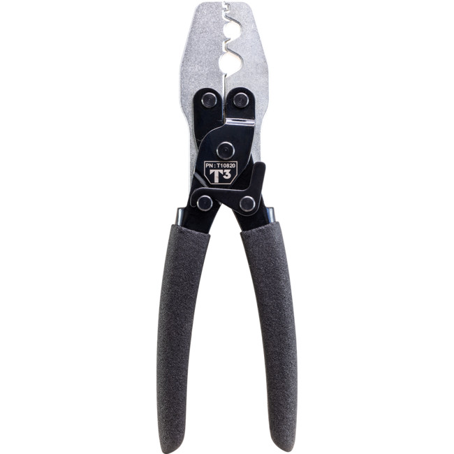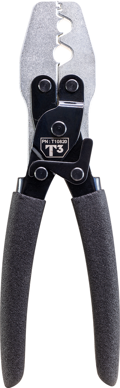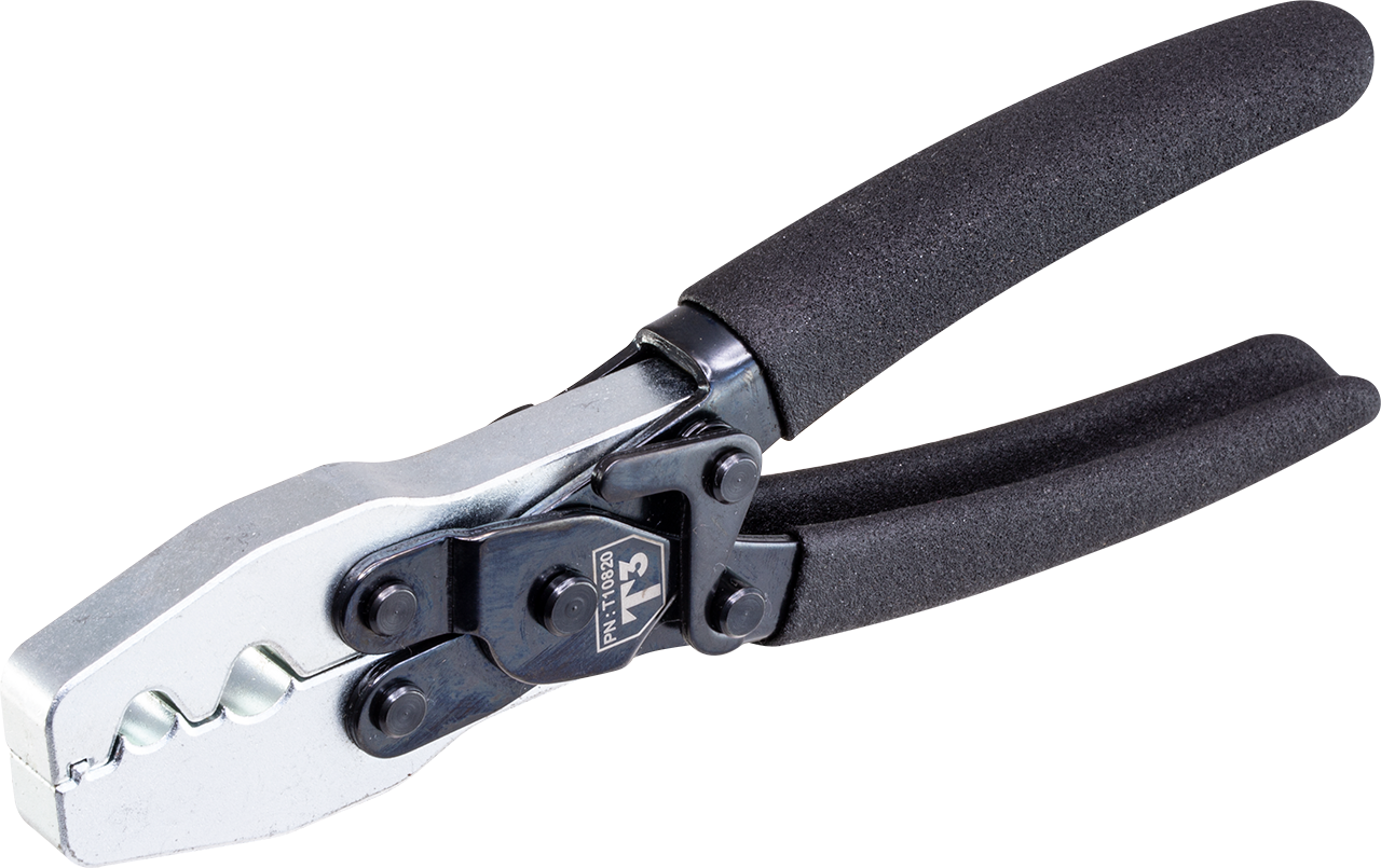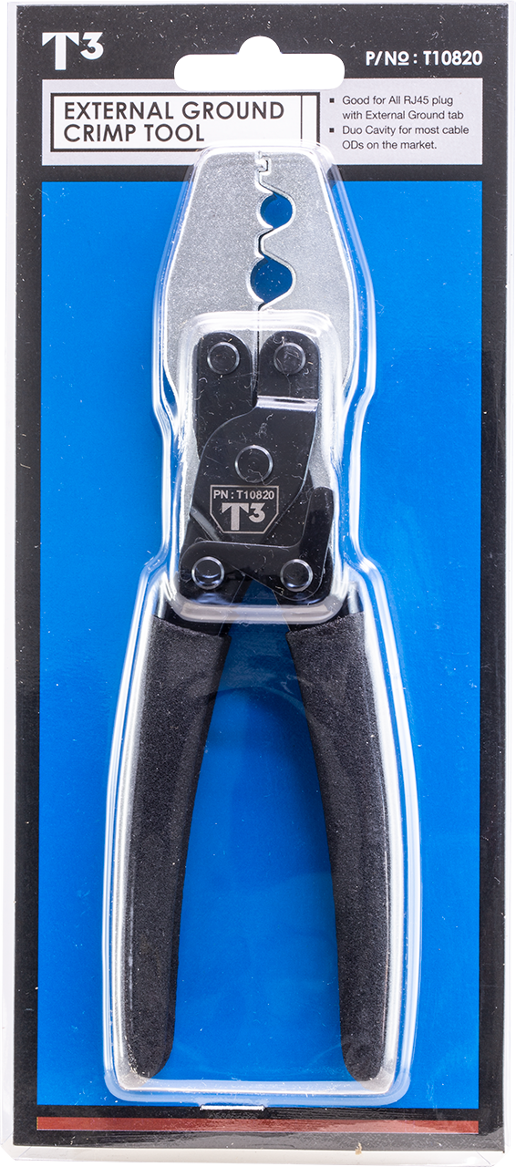 This tool performs a 360°Crimp on the external ground tab. Good for professional installation that requires high performance, and quality finish, preventing over or under crimping on the external ground tab.