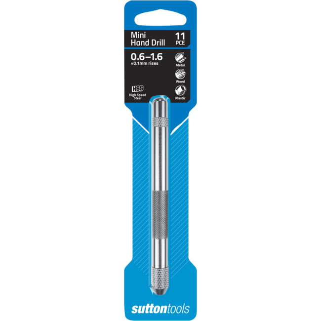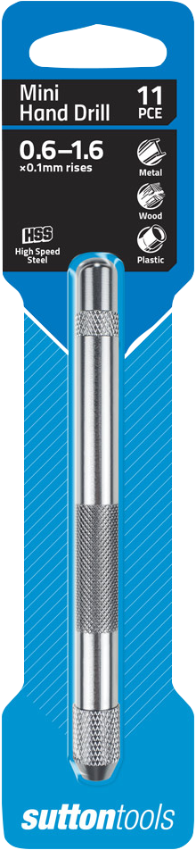 Sutton Tools tip tool drills are designed for hand drilling soft metals, wood and plastic. Suitable for metal working, electronics, jewellery, model engineering andgeneral hobby work. Drill bits made from high speed steel. Includes drill sizes from 0.6 to 1.6mm.
