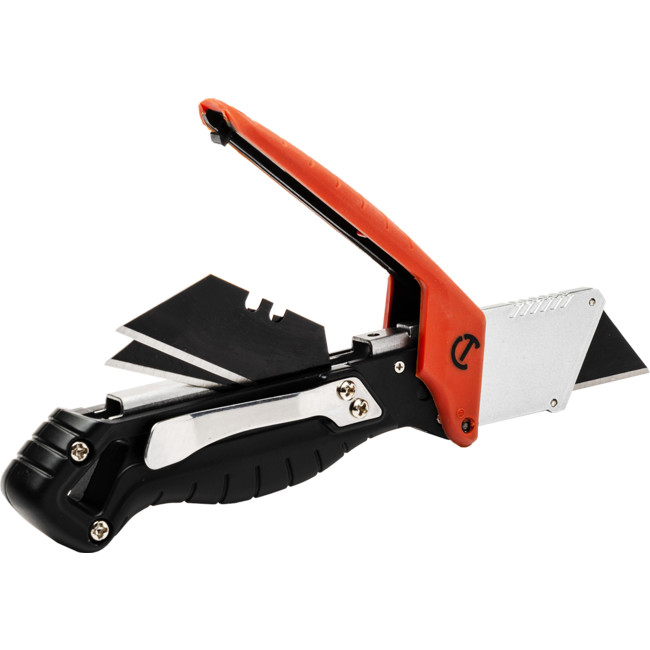 The Crescent Quick-Change Utility Knife features an ergonomic comfort grip that keeps your hand securely in place when making cuts in any environment. The knife blade securely locks in both the open and closed positions for added safety. The quick-change lever and embedded blade storage let you quickly swap out blades, without having to search for replacements.