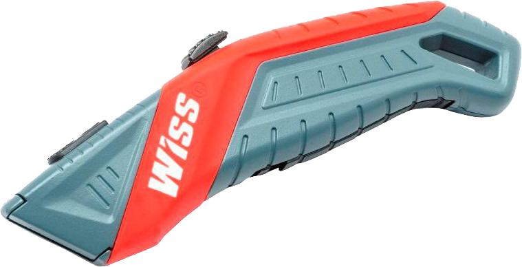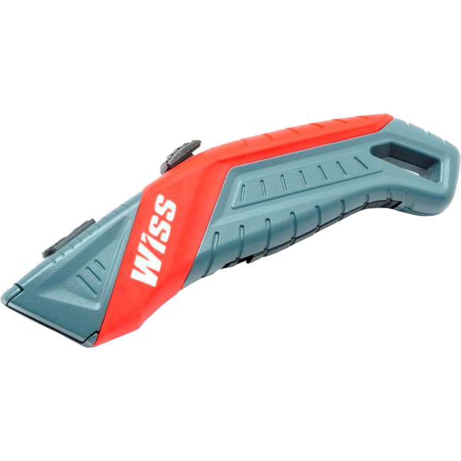 The Wiss Auto-Retracting Safety Knife retracts automatically when a cut is complete and it loses contact with the material being cut, even if the user is still holding the blade slider forward in the 'Open position. This feature cannot be overridden under normal use, reducing workplace injuries. This knife accepts all standard utility knife blades with a quick blade change, and comes with three black-oxide coated blades.
