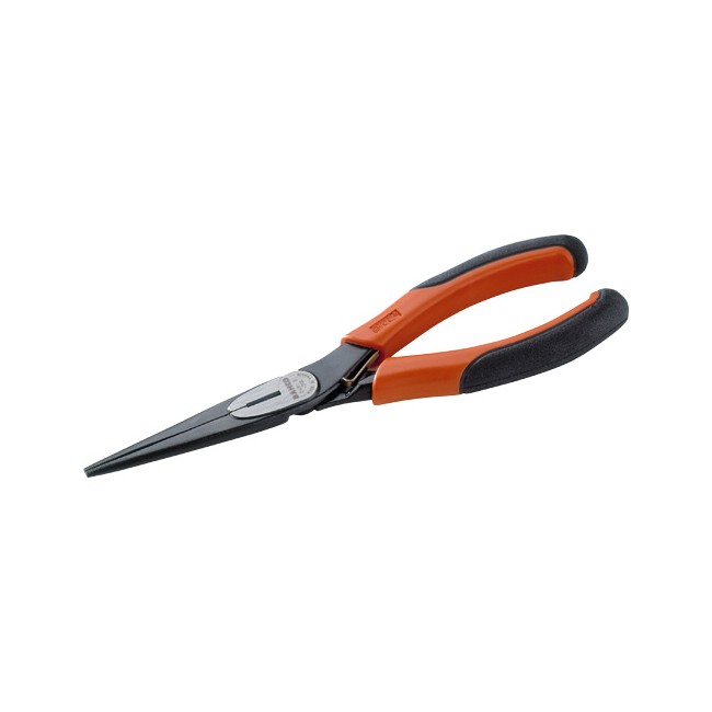 • Snipe nose plier with slim, semi-circular shaped and serrated jaws.