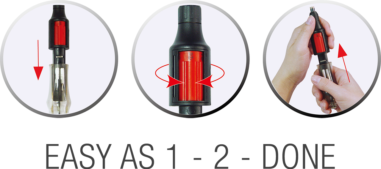 The patented mechanism on the Doss ALSDP101 makes findingthe right bit a breeze. Simply pull back the handle, rotate the dial to your desired bit and lock the handle back in. Easy!