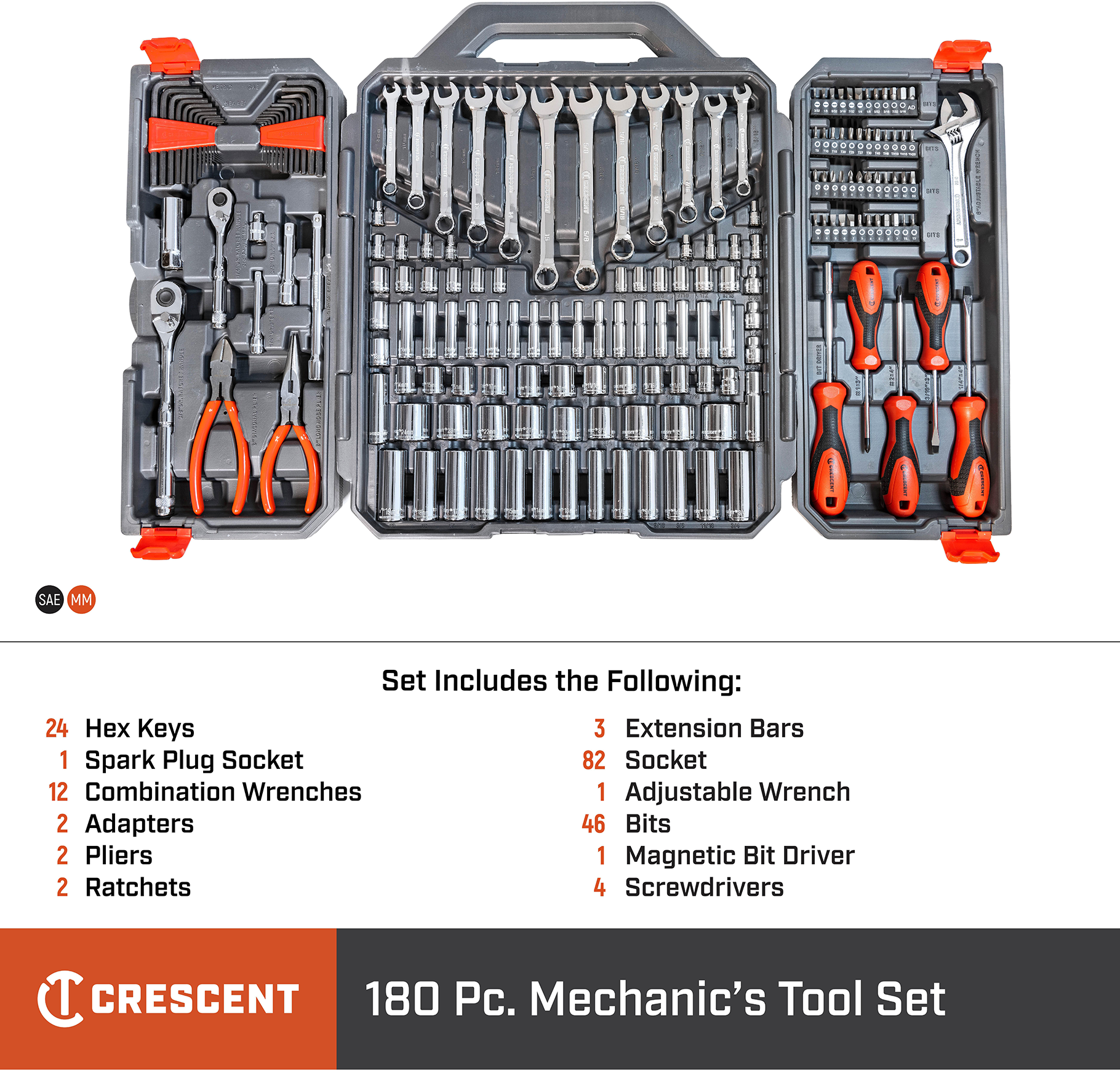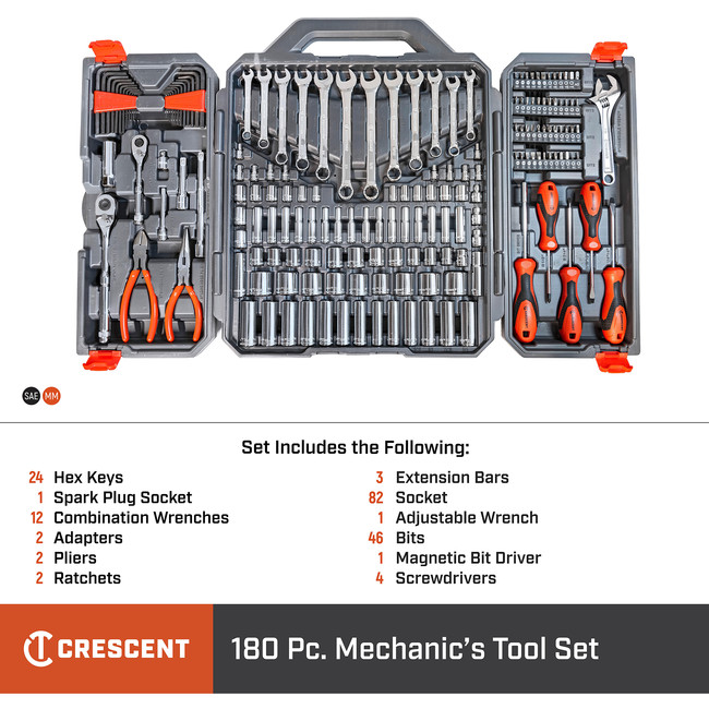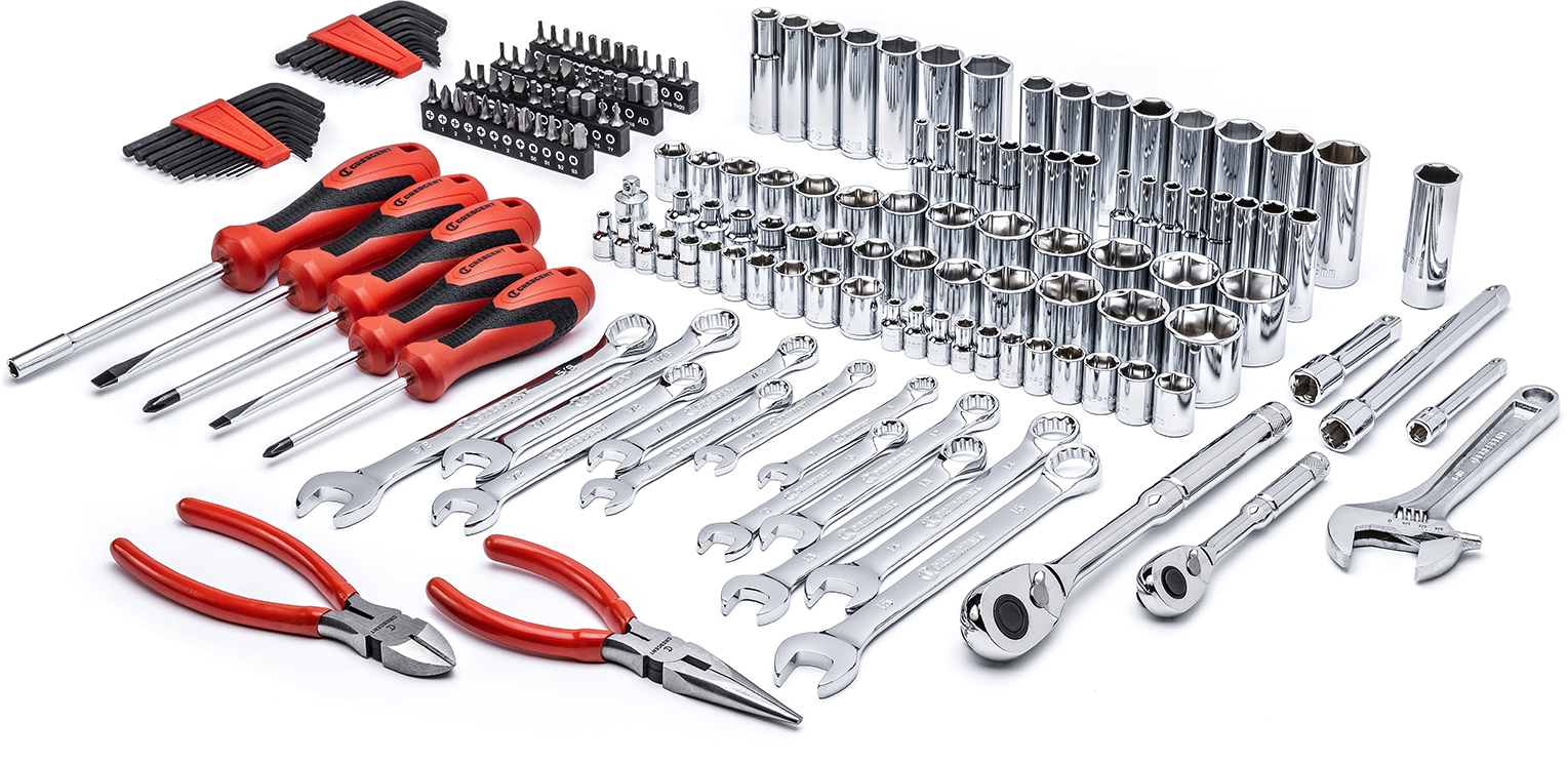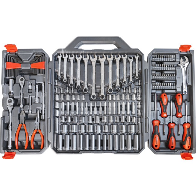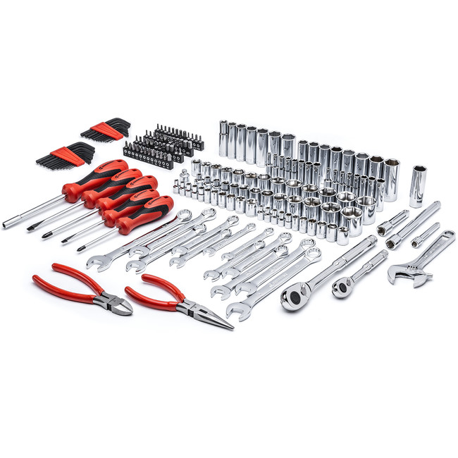 Contains a carefully selected assortment of hand tools needed for most industrial, mechanical and consumer applications Incredible access from long wrenches with narrow heads, adjustable wrenches and pliers, and a long-beam ratchets with small teardrop headsLong nose & diagonal pliers with professional, ergonomic dipped grips wipe clean easily