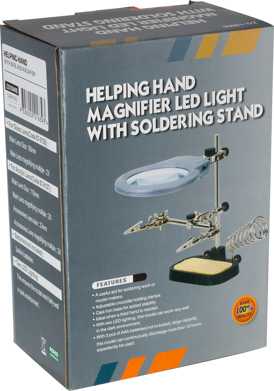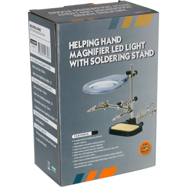 • A useful aid for soldering work or model makers.