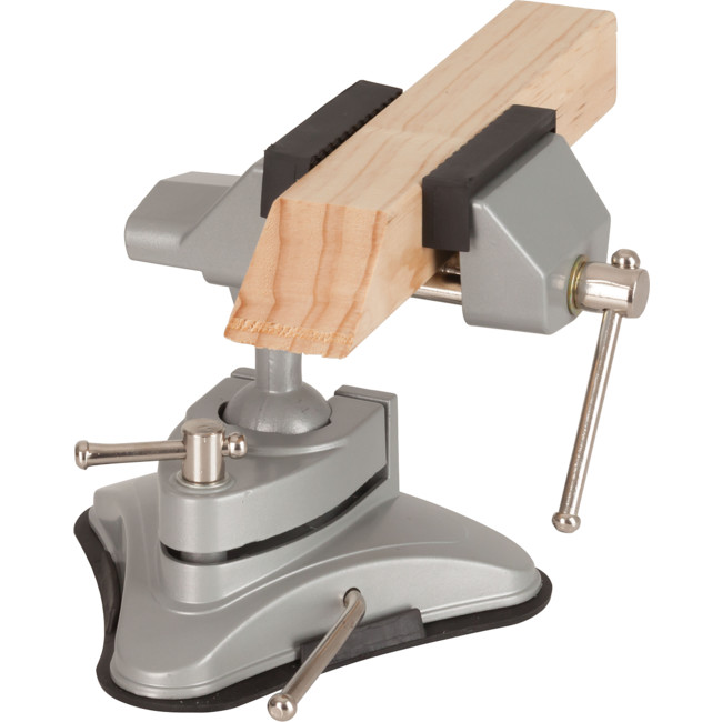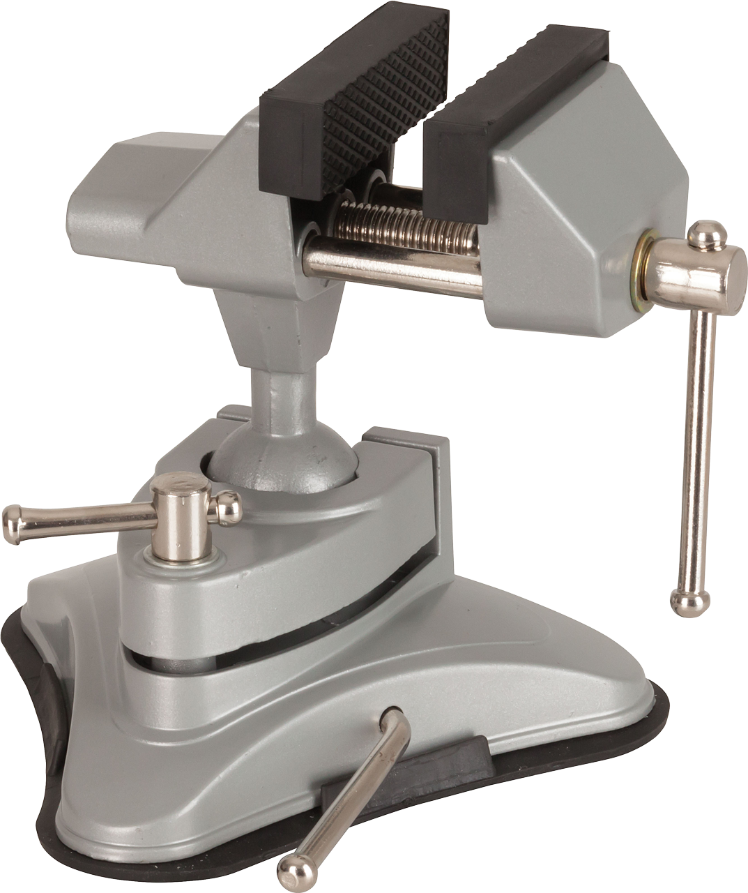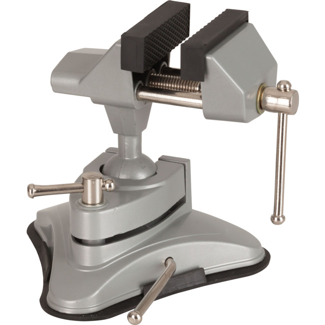 This quality vacuum vice is made from hard-wearing diecaset aluminium. The vice consists of three-pieces; a vacuum base,ball joint clamp and a 75mm opening jaw with removable soft rubber jaw covers. The 'V' grooved jaws are ideal for holding cylindrical and irregular shapes, making it well suited to small bench jobs such as model building, jewellerymaking and general PCB/chassis work. The multi-positional ball swivel allows the jaws' working position to be varied through a full 360deg axis. Stands approximately 160mm tall.