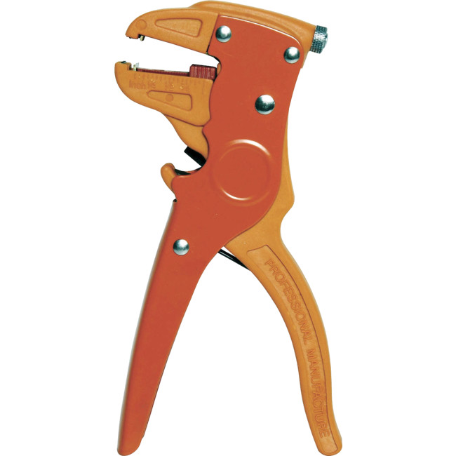 Includes inbuilt cutter. Insert cable and squeeze the handle for an easy and accurate strip. With adjustable tension and strip length.