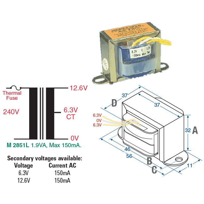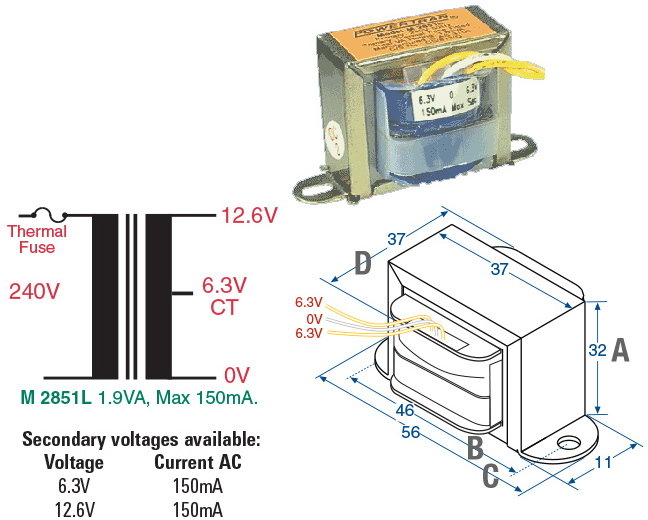 M2851C 12.6V 150MA MAINS TRANSFORMER