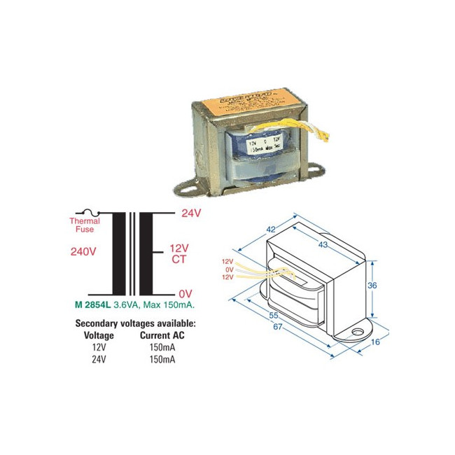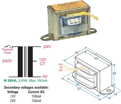 • Secondary Voltages Available: Voltage : 12V, 24 / Current : 150mA