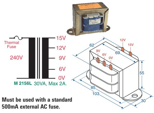 M2156C 6.3V- 15V 2A MAINS TRANSFORMER
