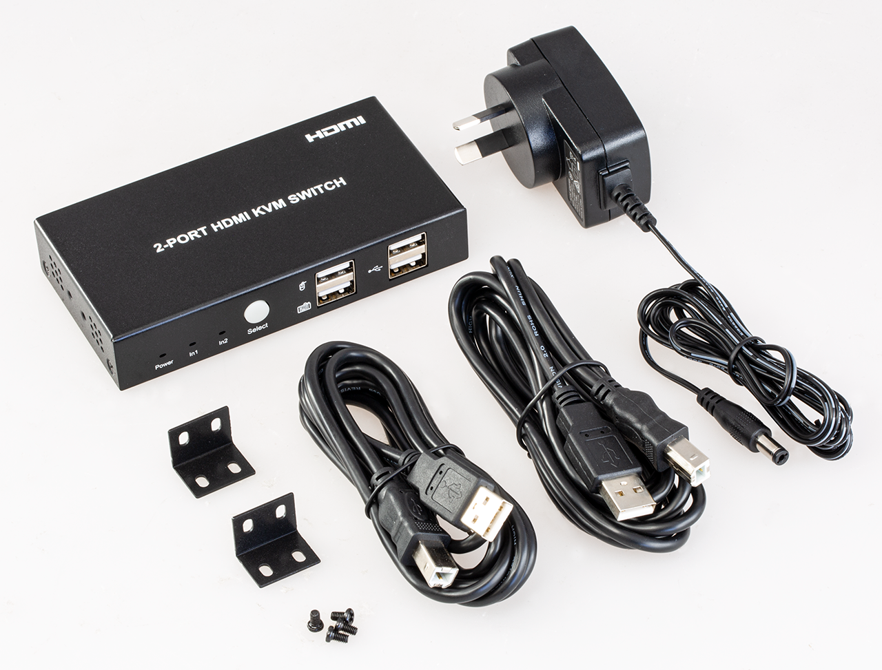 Unlike the other passive KVM switch on the market, this KVM2S switch is active and supplied with a power supply to sustain the stability and performance when USB2.0 ports connect to the devices, not the keyboard and mouse, like theexternal hard drives.